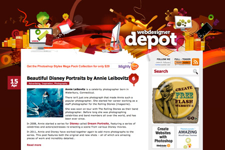 Now…you could argue that what’s left is just a header graphic and that essentially the rest is gone. It’s true, the rest of WDD is fairly content centric, however, the heavy graphic at the top does lock the design in place. For example, what if you wanted to change the logo and move it to the left? You can’t, there’s some computers there. What if you wanted to add navigation at the top? Tricky. What if you wanted to do any other updates in the header or change the background color of the page? Difficult. The header visuals lock the design in place–not a great position to be in if you want to change things later on.