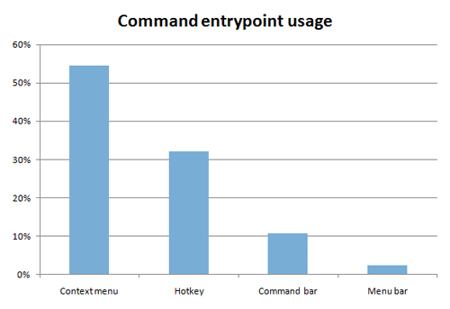 2) More important, Seldo points out that menu bar usage is less than 5% on Microsoft’s own research, whereas context menu usage is at around 55%.
